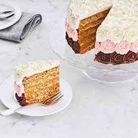 Виды тортов. Почти каждый месяц наши кондитеры презентуют новый вкусный тортик. Если говорить об основе, то это может быть песочное, сдобно-сбивное, бисквитное тесто, медовые или шоколадно-медовые коржи, воздушная заварная основа, хрустящие вафельные листы, корж бизе. В начинках еще больше разнообразия. Это кремы: шоколадный, «Лакомка», творожный, на основе маскарпоне, молочно-белковый, заварной и так далее. Кроме этого: апельсиновый джем, сладкая творожная масса с курагой и маком, вареная сгущенка и орехи.